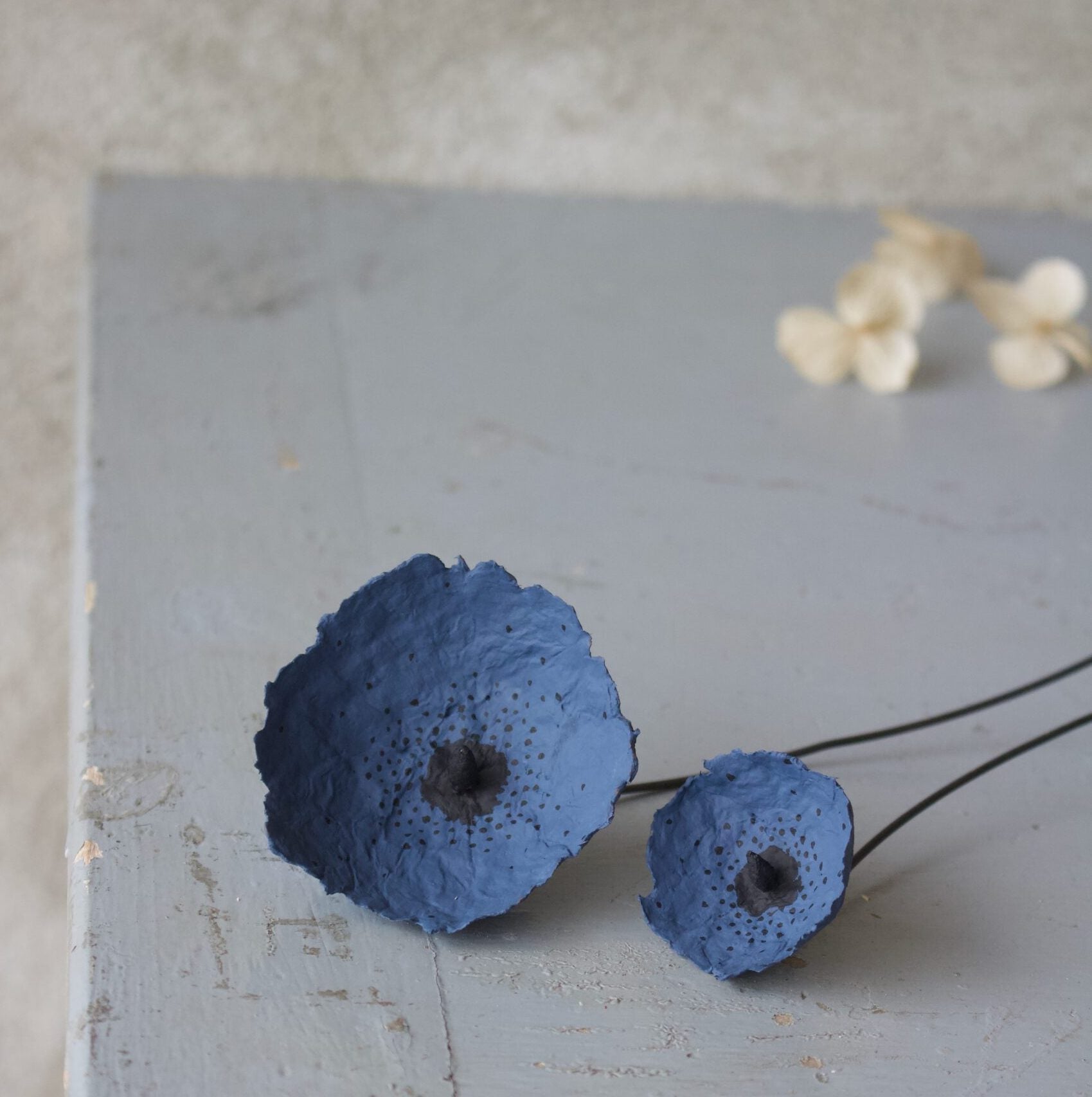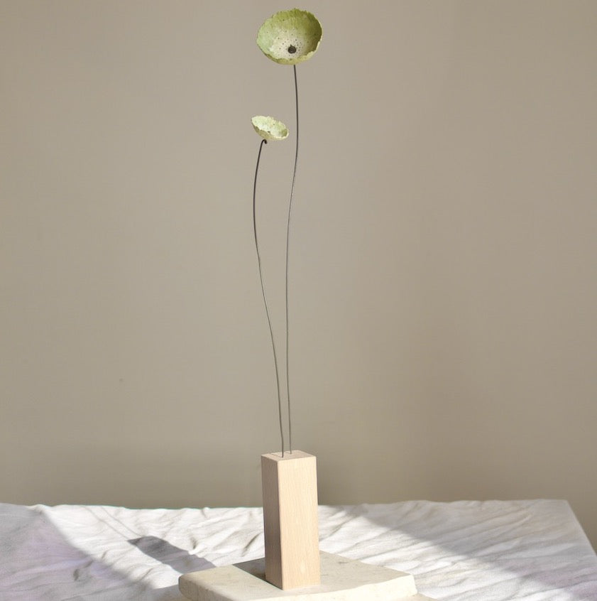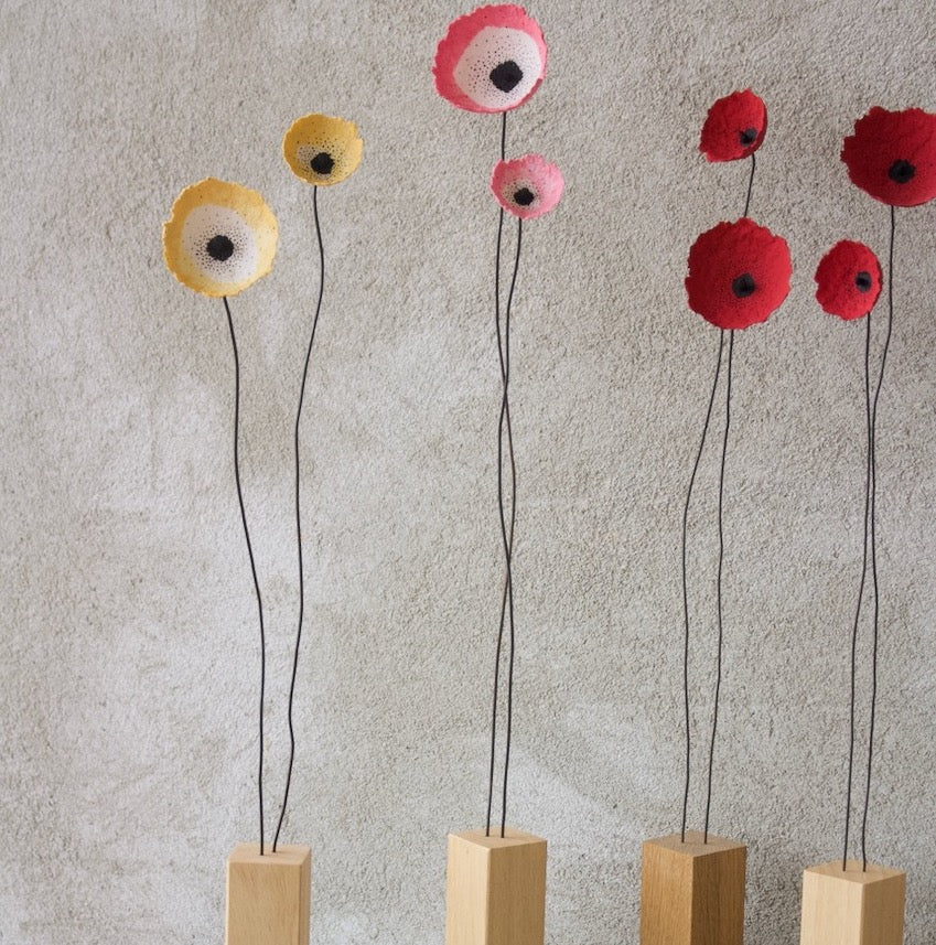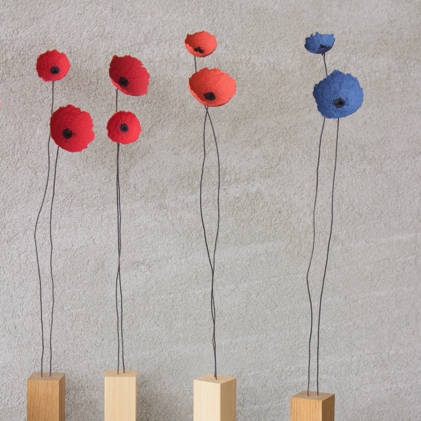 Fiori in cartapesta realizzati a mano, montati su uno stelo di fil di ferro cotto e posizionati su una base in legno di ayous o di rovere (a scelta). Ogni fiore è un pezzo unico, per questo motivo sono diversi l’uno dall’altro e possono presentare piccole differenze rispetto alla foto di presentazione. Sono adatti per ogni luogo della casa: in soggiorno, in cucina, in camera da letto, in ufficio. Lo stelo in filo di ferro cotto NON è incollato alla base di legno in modo tale da permettere un eventuale modifica della sua misura. Per farlo è molto semplice: basterà usare una tronchesina e tagliare lo stelo della misura a voi più gradita.