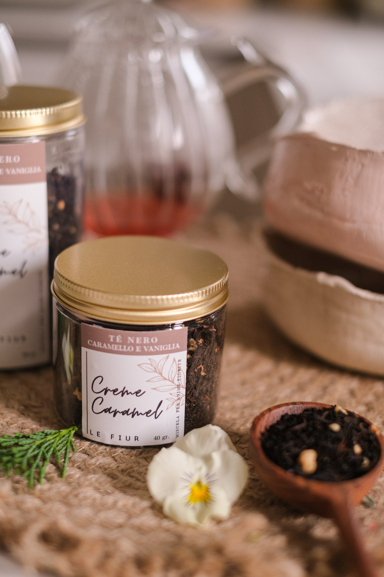 Incomparabile composizione dal sapore dolce, cremoso e leggermente speziato su una base di tè nero cinese e Ceylon di qualità. Una Crème Caramel appena fatta accompagnata da una pallina di panna dolce e cremosa.