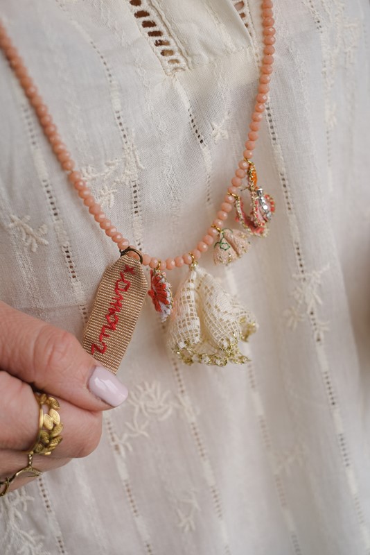 Ogni ciondolo, un’emozione intrecciata a mano. Un viaggio tra luce, colori e dettagli preziosi. Collana a montatura lunga che intreccia la forza autentica dei quarzi naturali con la delicatezza di ciondoli ricamati a mano, arricchiti da minuscoli cristallini e ninnoli leggeri.