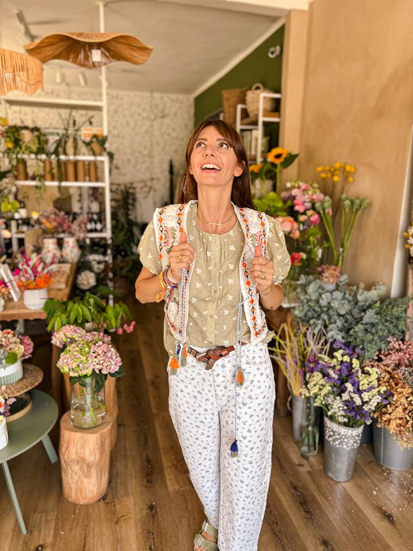 Questo Gilet si ispira proprio al Gipsy Garden, tra mangiafuochi e giocolieri, lo sceglierai per i colori e gli specchietti che illuminano! Bellissimo sia davanti che dietro! La base è una tela bianca, da indossare da solo, o abbinato (la camicia Giardino segreto è perfetta insieme!)