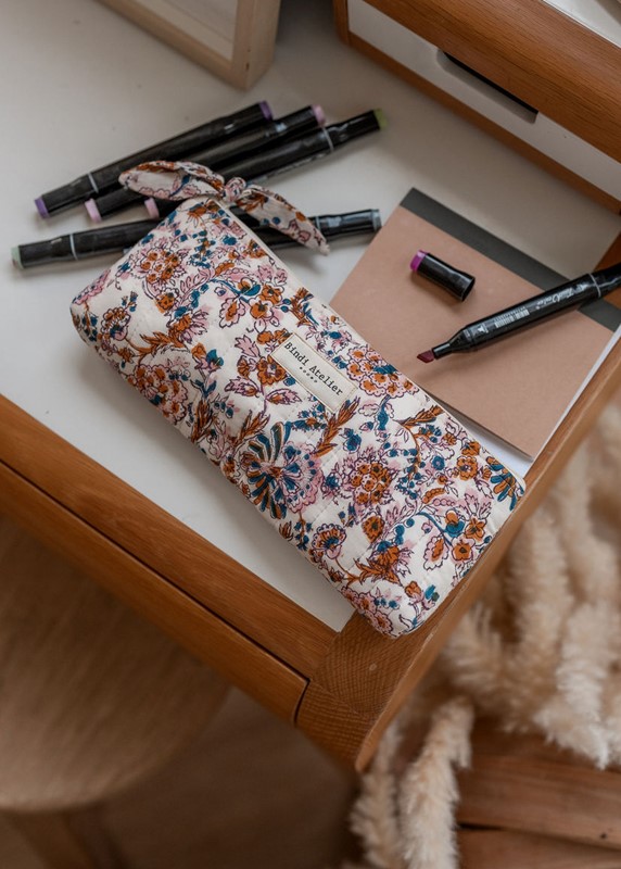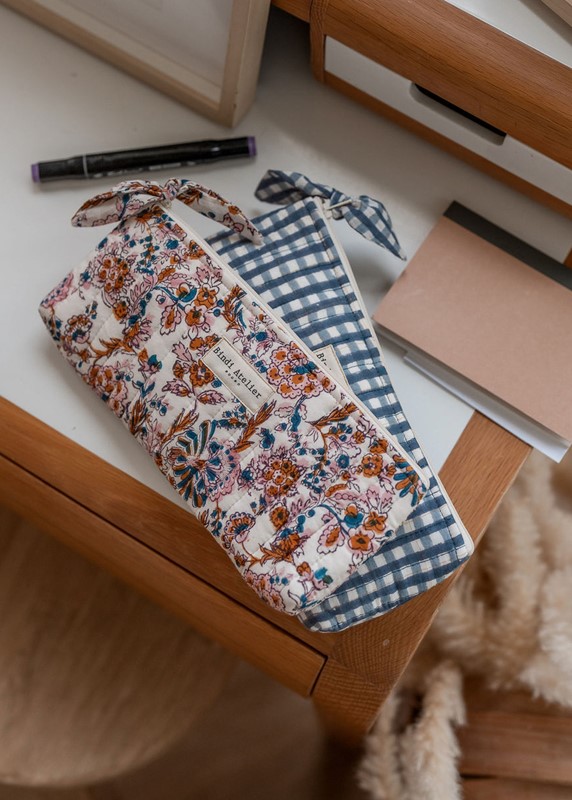 Astuccio portapenne o per altro uso (matite per trucchi veloci, rossetti, e necessaire per essere bella sempre!) Un accessorio essenziale da infilare nelle borse dei bambini, per l’ufficio o negli zaini scolastici. Amiamo le sue stampe iconiche, intramontabili ed eleganti che conquisteranno grandi e piccini. Dimensioni: 26 x 12 x 3 cm 100% cotone trapuntato Tessuto stampato a mano con la tecnica blockprint Stampato e prodotto in India